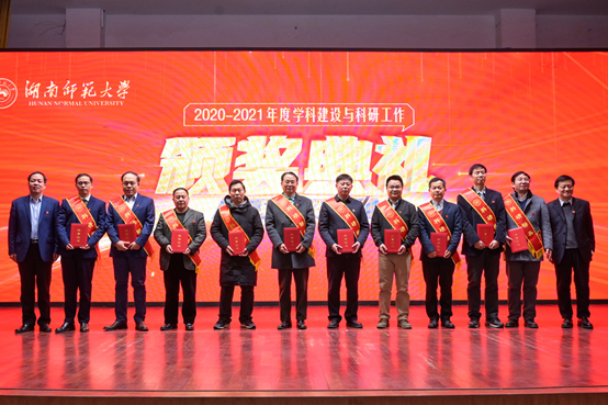校党委书记蒋洪新、校长刘起军、校党委副书记周俊武、校纪委书记姚春梅、副校长唐贤清等为获表彰的科研标兵、青年标兵、管理先进集体和先进个人颁奖。长江学者刘铁芳教授、国家“优青”获得者廖洁桥教授和外国语学院院长曾艳钰教授分别致颁奖词。