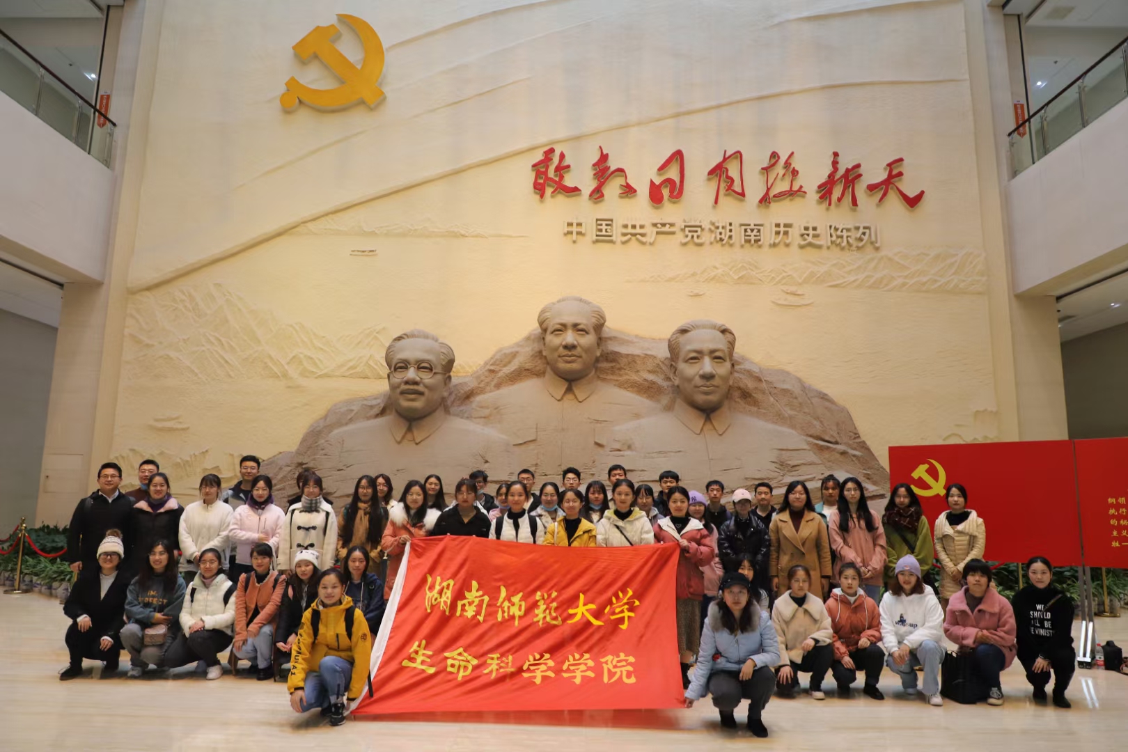 2020年11月22日,生科院本科生党支部赴湖南党史陈列馆开展本学期第一次线下主题党日活动暨预备党员入党宣誓仪式。我院学工办副主任杨卓、团委书记赵志浩、党支部书记王洋、李翠玲以及本科生党支部49名学生党员参与此次活动。