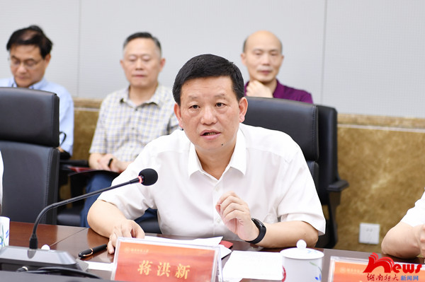 座谈会上,蒋洪新对省委省政府长期以来的关心支持表示衷心的感谢,并汇报了学校有关工作。他指出,在省委省政府的领导和支持下,学校坚持社会主义办学方向,人才培养质量稳步提高;坚持人才至上,科学研究成果丰硕;坚持服务国家和我省战略,社会服务能力不断增强;坚持以文化人,打造特色校园文化,各项事业取得了长足进步。他表示,学校一定会抢抓机遇,深化改革,主动服务新发展格局和湖南“三高四新”战略,努力推进学校“双一流”建设,奋力办好党和人民满意的教育,全力建设“创新师大、特色师大、开放师大、智慧师大、幸福师大”,努力开创教师教育特色鲜明、国内一流、国际知名的高水平大学建设新局面,推动学校成为国家人才培养和知识创新的重要基地、地方经济社会发展的重要支撑、湖南乃至全国教师教育发展的重要引擎,为湖南省“三高四新”战略作出更多的贡献,为党的百年华诞献礼。
