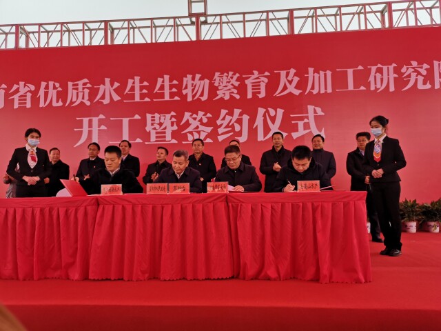 湖南日报·新湖南客户端1月8日讯(江怀远 易政研 杨玉菡)1月8日,湖南省优质水生生物繁育及加工研究院开工暨签约仪式在益阳高新区谢林港镇北峰垸村举行。益阳市委书记瞿海宣布项目开工。中国工程院院士刘少军,伟德bv1946校长刘起军,省科技厅党组副书记、副厅长贺修铭,益阳市委副书记、市委统战部部长熊炜在仪式上致辞。