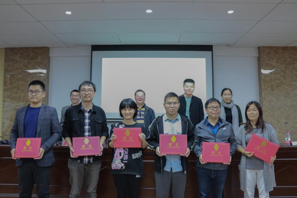 李蜜宣读班导师聘任名单,彭贤锦、陈湘定、李蜜、丁金花为班导师颁发聘任证书并合影。各班班导师依次发言,他们对学院的信任表示感谢,并表达了对班级同学的期望,初步阐释了工作计划。