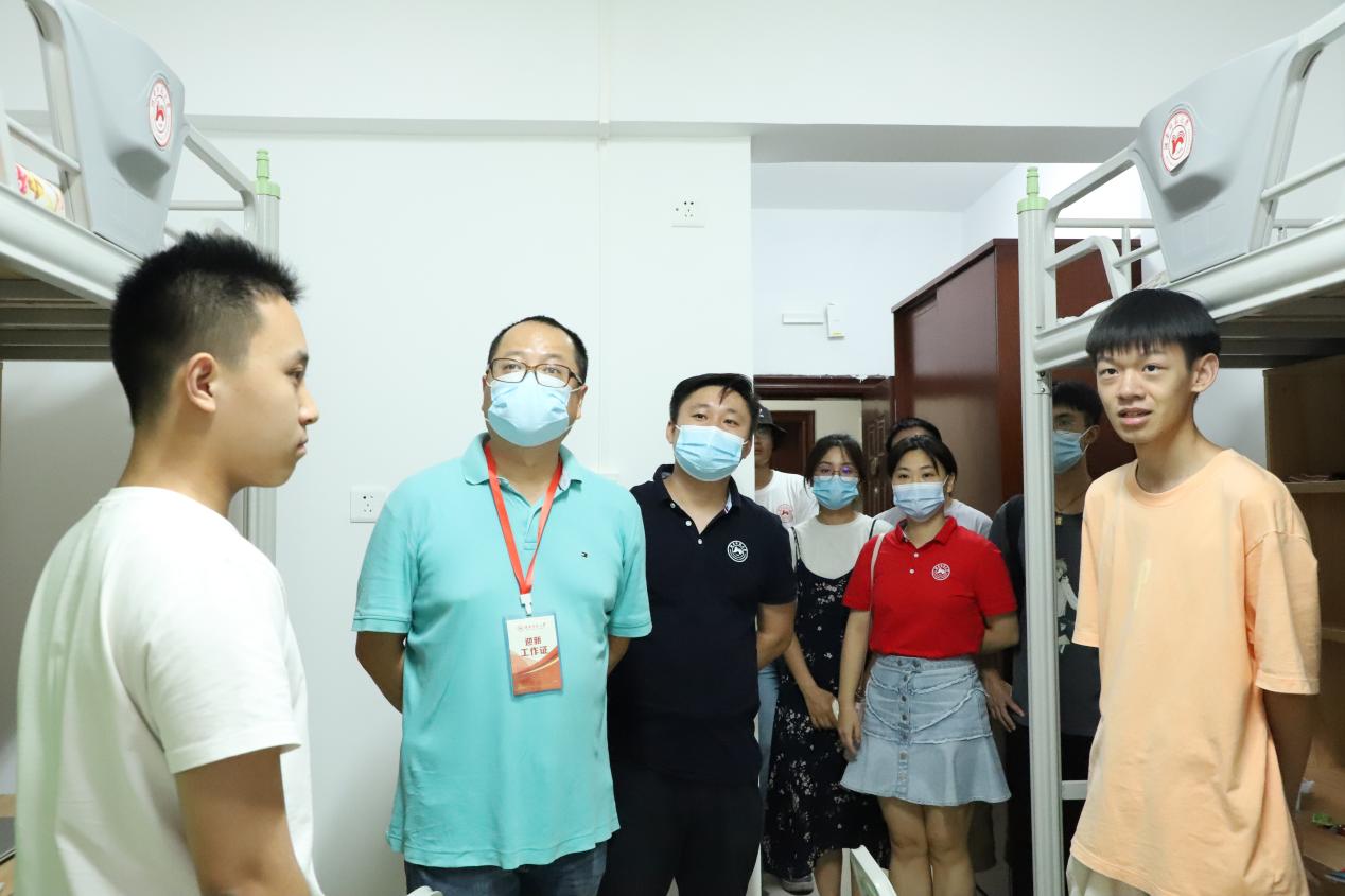 彭贤锦对新生的到来表示欢迎,并询问了新生们宿舍生活、用餐情况、核酸检测等情况,希望新生们以良好的状态迎接即将开始的大学生活。同时,他嘱咐新生们,要落实好个人防控责任,按照要求完成核酸检测,共同维护校园安全稳定。