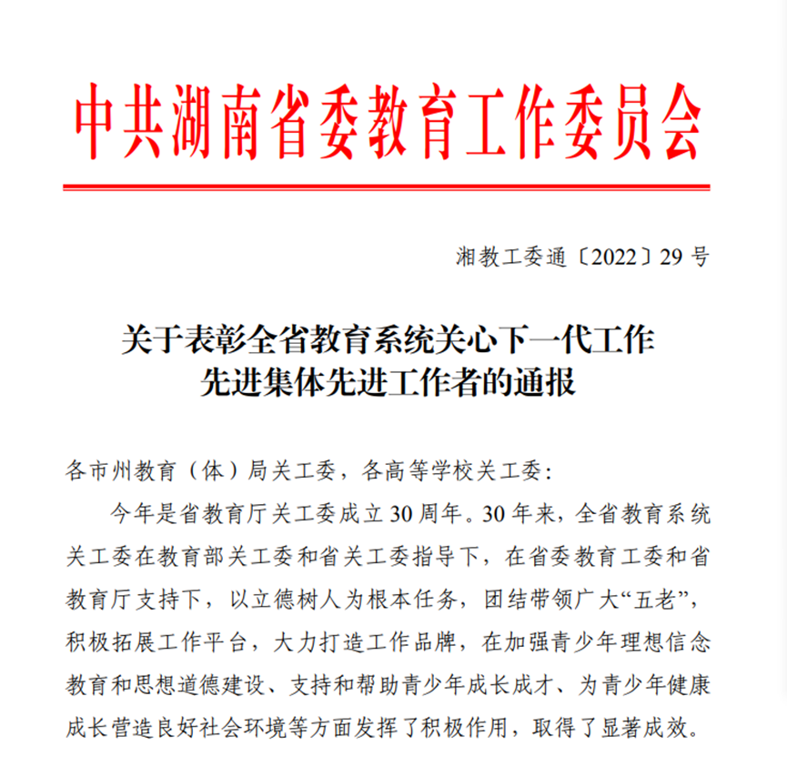 附:学校全省教育系统关心下一代工作表彰获奖名单