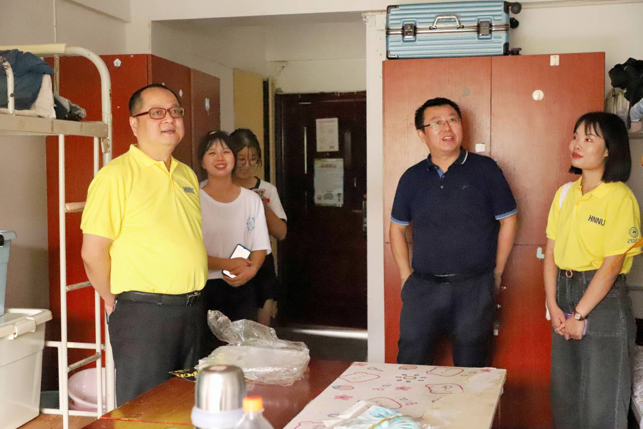 彭赛丰书记一行人依次走访田径场和宿舍迎新站点,对工作在一线的迎新志愿者亲切慰问,并与新生以及家长进行沟通。随后领导们前往学生宿舍,与新生们进行亲切交流,了解学生需求,对学生们提出的问题进行耐心解答,并向同学们介绍学校和学院的基本情况,鼓励大家积极适应新环境、融入新集体。
