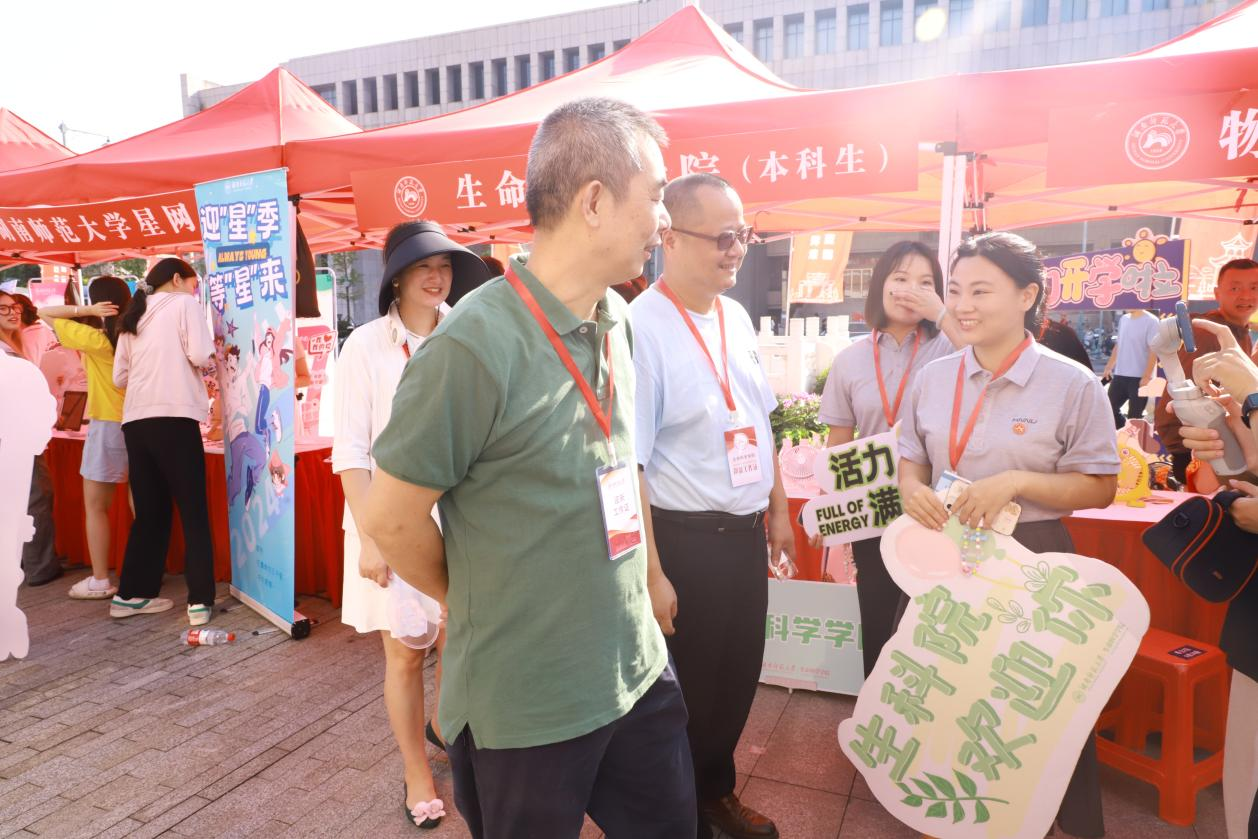 彭赛丰等领导老师前往生科院五舍广场迎新站点,对工作在一线的迎新志愿者门的用心准备和辛勤付出予以肯定并表示感谢,叮嘱他们一定要及时用餐、防止中暑。随后,彭赛丰与新生以及家长进行沟通,了解新生需求,并对新生们提出的问题进行耐心解答。彭赛丰向同学们介绍学校和学院的基本情况,表示在之后的学习和生活中学院将会尽力为新生提供帮助,同时他鼓励大家积极适应新环境、融入新集体。新生们对学院领导的走访表达感谢,并表示会尽快适应大学学习生活,在大学四年里书写自己的人生篇章。