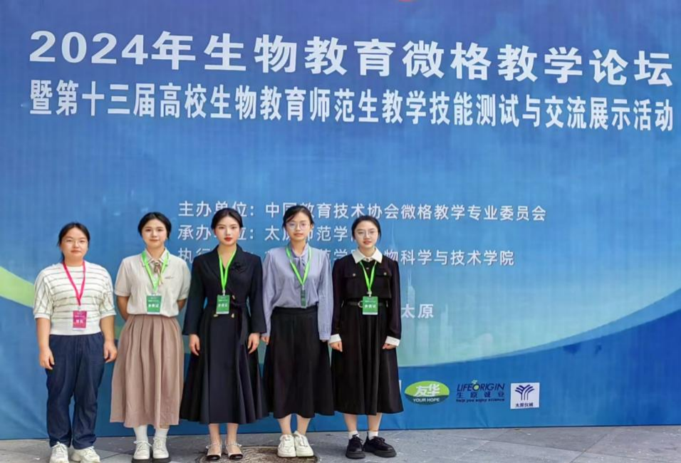 (通讯员 陈淑娟 陈茜 张晰然)10月18日-21日,由中国教育技术协会微格教学专业委员会主办、太原师范学院承办的第十三届“华文杯”全国高校生物教育师范生教学技能测试与交流展示活动顺利举行。经过教学设计评比、现场阐述教学思路、模拟授课和现场答辩等环节的激烈角逐,生科院四名参赛学子全部获奖。在教学技能竞赛中,陈淑娟、朱新瑜同学荣获全国一等奖,王妍、陈茜同学荣获全国二等奖。