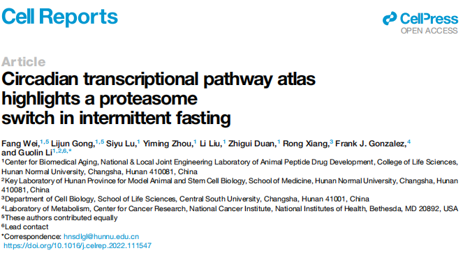 北京时间2022年10月25日晚23时,Cell Reports在线发表了伟德bv1946李国林团队的最新研究成果——“Circadian transcriptional pathway atlas highlights a proteasome switch in intermittent fasting”。