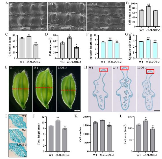 图1.lcd3突变体籽粒增大由小穗壳细胞扩张引起