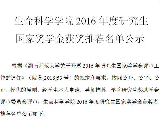 伟德国际victor19462016年度研究生国家奖学金获奖推荐名单公示