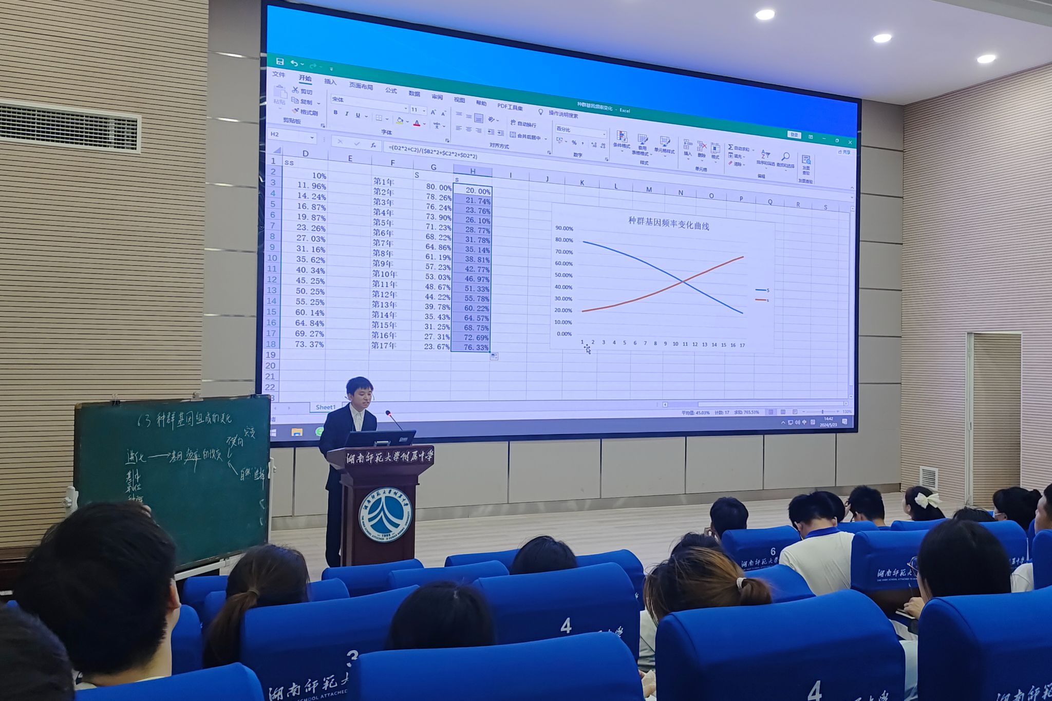 彭宇主讲第一节《种群基因组成的变化》。教学设计秉承“三导四学”和学科融合的理念,以教材中的桦尺蛾基因频率和基因型频率的变化为主线,直指生物进化的实质,借助数学建模的理念,直观展示基因频率的变化规律,提高了学生的科学思维和科学探究能力。陈宇星主讲第二节《协同进化和生物多样性的形成》。在“三导四学”的框架下,陈宇星以兰花的命运以及生物与无机环境之间的协同进化为逻辑线,目的是帮助学生理解协同进化的定义以及形成过程。她将教材进行了重构,将材料带进课堂,学生主动观察和探究,调动了学生的主动性,真正做到了“将课堂还给学生”。