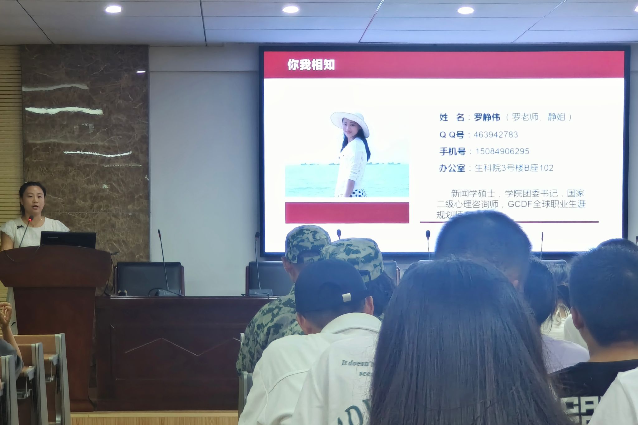 罗静伟向新生们做自我介绍,分享从事辅导员这一职业的心路历程,并为新生提供一份《辅导员“使用说明书”》,教导新生与辅导员的相处之道。随后,罗静伟阐述大学里学业规划的重要性,并从自主学习、人际交往、考研保研、长短期学业与职业规划等几个方面展开讲解。同时,罗静伟以阅读英语为例,为新生推荐若干个对拓宽视野卓有成效的软件和网站。针对新生们可能面临的心理压力、学习困惑等方面,罗静伟提供各方面指导和建议,鼓励新生勇敢面对挑战,多与老师同学沟通,积极适应大学生活。
