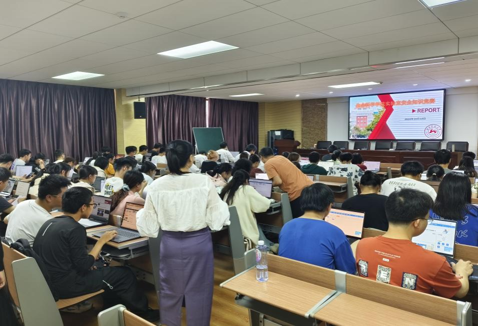 (通讯员 吴德高 喻雪 邓芝涵)为强化实验室安全意识,提升广大师生的安全素养,10月18日中午,伟德国际victor1946于学术报告厅b307组织开展实验室安全知识竞赛。实验技术人员彭伟卓以及江志钢、2024级辅导员罗静伟、2021级辅导员刘迎彬等老师负责竞赛的监考,并协助考生及时进入竞赛系统。