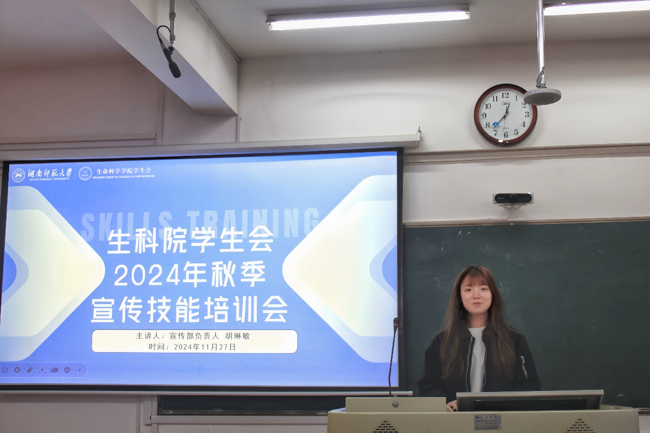 (通讯员 杨静茹 曹晟)11月27日中午,伟德国际victor1946学生会于生科院三号楼B107教室举办2024年秋季宣传技能培训会。生科院第49届学生会宣传部负责人胡琳敏担任此次会议主讲人。生科院第49届学生会全体成员参与此次会议。