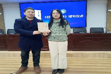 霍林巨代表达人学社赠予王依琛《好奇与敬畏》一书