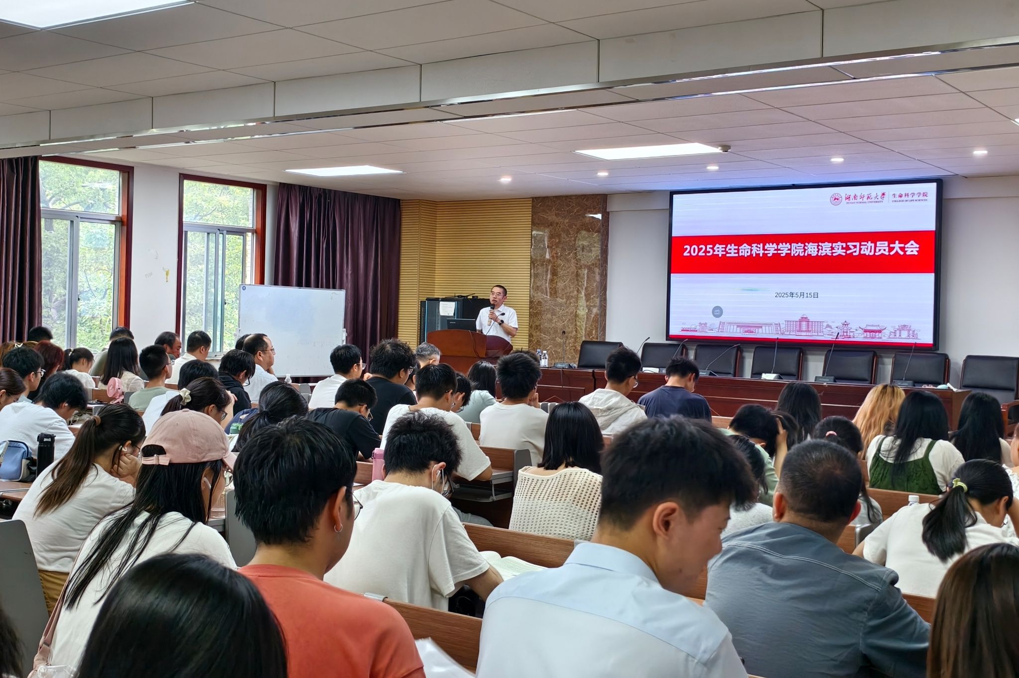 (通讯员 张芷慧 王佳佳)为保障2024级学生海边实习工作的顺利开展,伟德国际victor1946于5月15日在院三号楼B307学术报告厅召开2024级海边实习动员大会。会议由莫小阳老师主持,学院领导、动植物系教师及2024级全体学生参会。