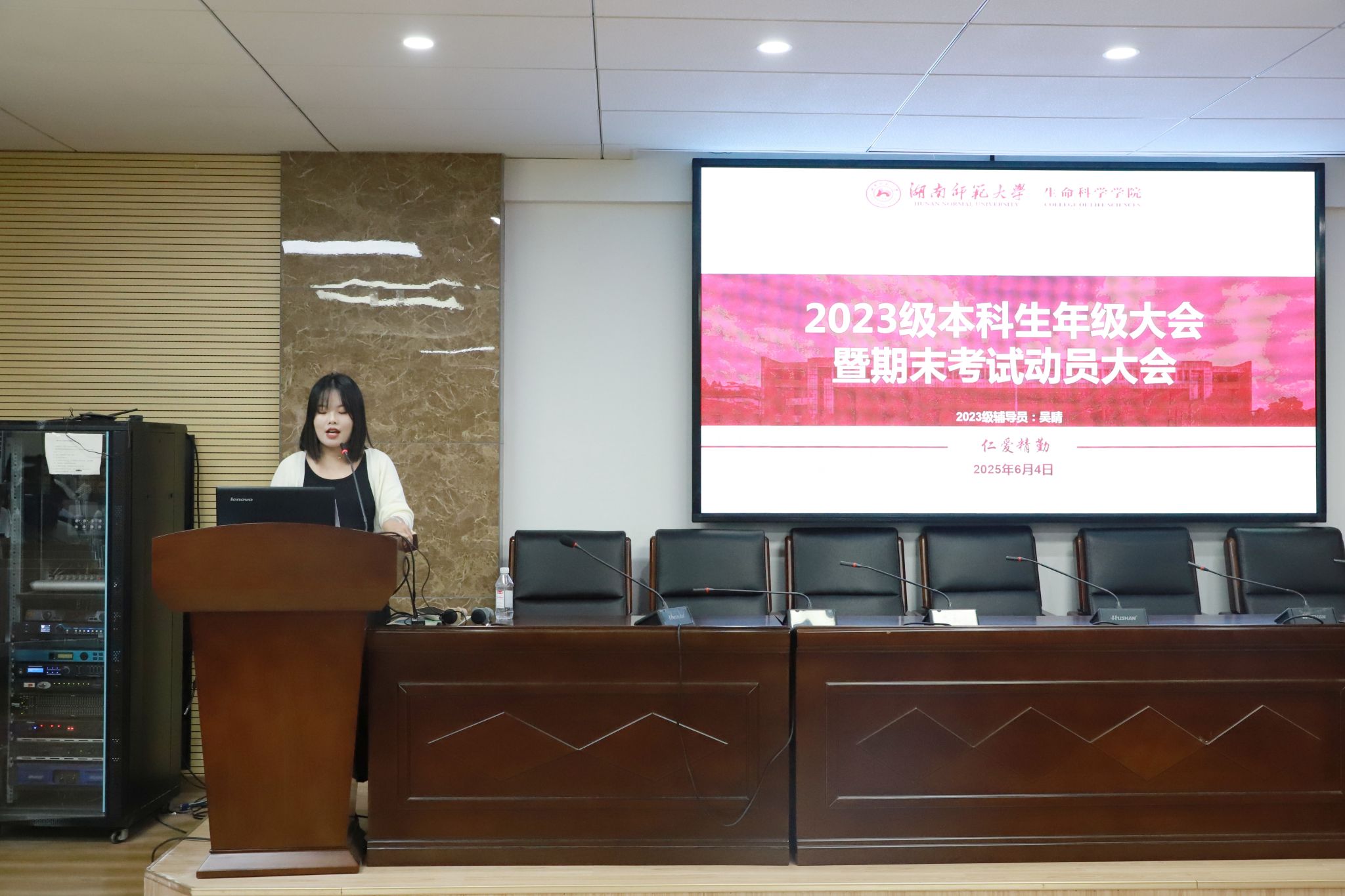 (通讯员 唐雨楠 蒋梦瑶)6月4日下午,伟德国际victor1946于三号楼B307学术报告厅召开2023级本科生年级大会暨期末考试动员大会。2023级辅导员吴晴担任本次会议主讲人。2023级全体本科生参加此次会议。