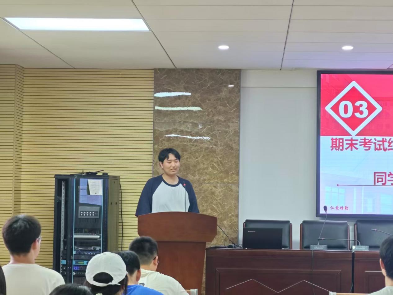 罗静伟向同学们介绍考研保研相关事项,提醒同学提前为升学做好准备,并期望大家以新面貌迎接大二学年。随后,24级年纪长吴德高与同学们分享期末考试经验,针对公共课的复习进行总结,其中包括中国近现代史、心理学、大学英语和计算机基础与应用等课程。24级生科三班谭杰午向同学们分享专业课的复习技巧,说明各学科的考试重点,同时提醒大家认真复习,积极备考。罗静伟对同学们进行考前诚信教育,要求所有考生签署考前诚信承诺书,希望同学们能自觉遵守考试纪律,诚信参考。
