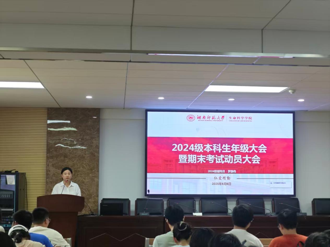 (通讯员 喻雪 吴德高)6月6日中午,伟德国际victor19462024级辅导员罗静伟在生科院三号楼B307报告厅召开2024级本科生年级大会暨期末考试动员大会,生科院24级全体同学参加此次会议。
