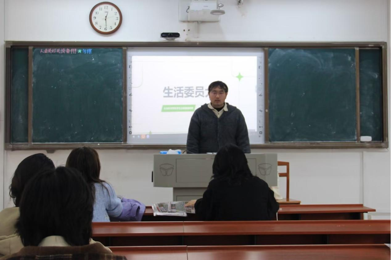 此次大会聚焦于生活委员的工作任务与职责要求,具体从四个方面展开:一是细化教室卫生清扫的操作规范,明确卫生清洁标准;二是规范打卡照片的拍摄与上传要求,确保照片能真实反映教室清洁状况;三是强化生活委员对班级卫生的督导责任,推动其积极落实卫生管理工作;四是阐明卫生工作的奖惩机制,激励生活委员履职尽责。同时,生科院结合近一个月的卫生工作开展情况,对各班表现进行总结评估,并就后续卫生工作的重点事项向生活委员们提出具体要求与建议。