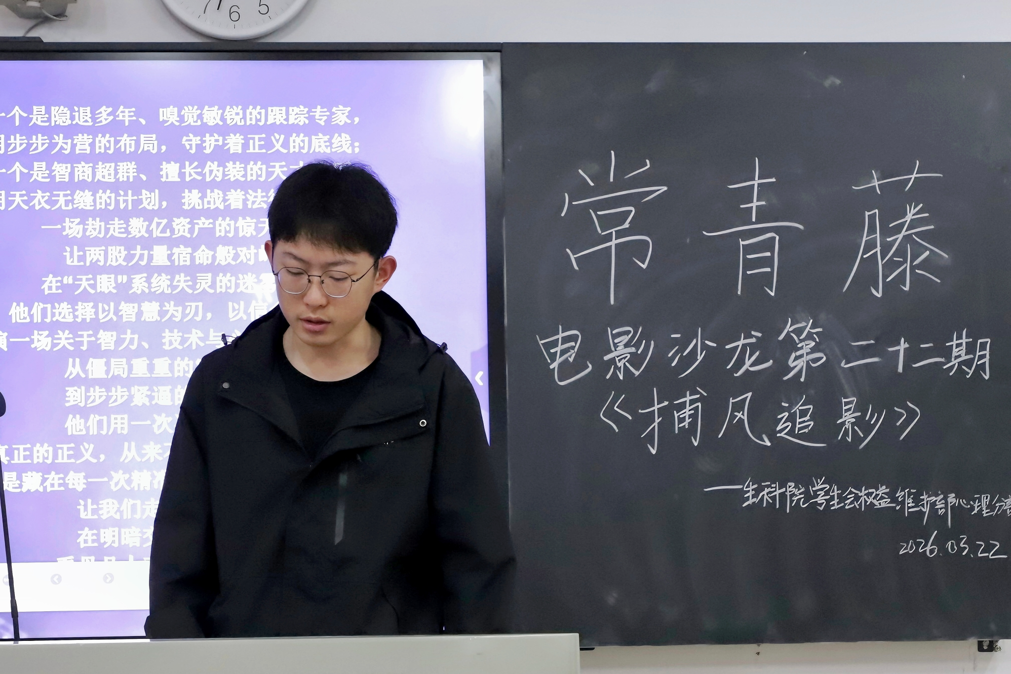 (通讯员 贾天成 谢碧瑶 胡雯芊)3月22日晚,伟德国际victor1946于生科院三号楼B108教室举办“常青藤”影院心理电影沙龙第二十二期观影活动。学生会权益部干事黄鹏杰担任此次活动主持人,生科院2023级、2024级、2025级部分本科生参加此次活动。