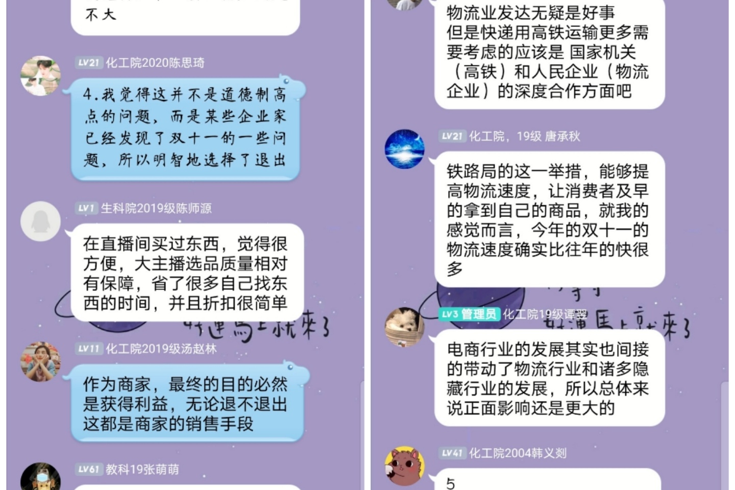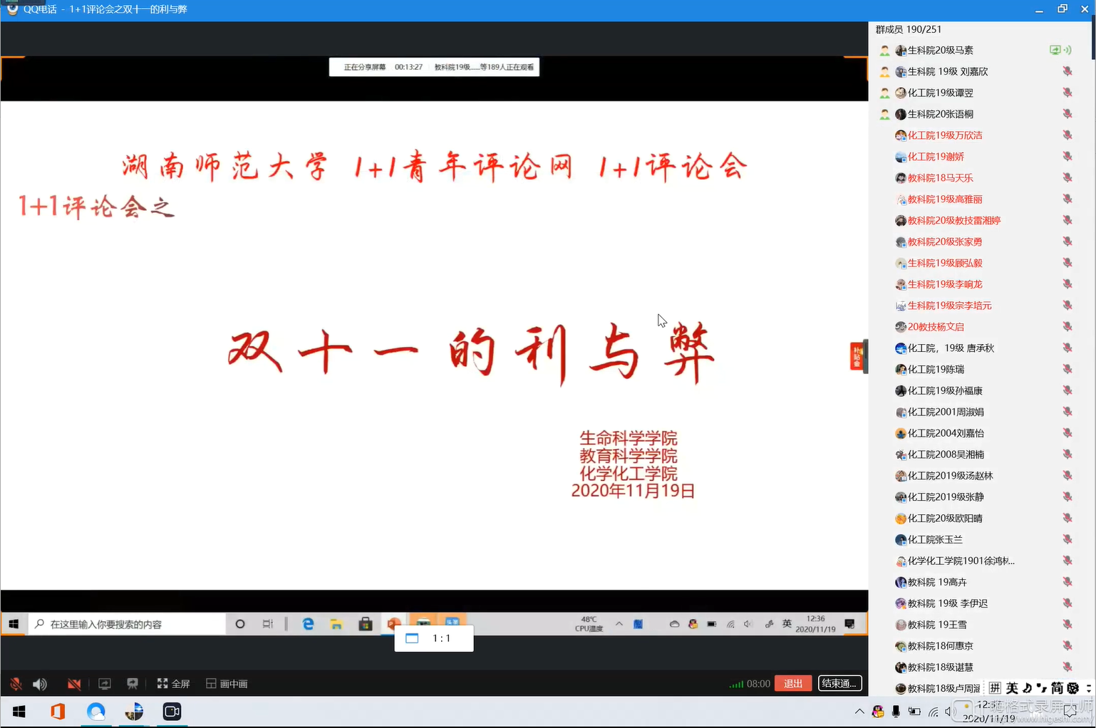 (通讯员马素)11月19日中午,伟德国际victor1946、教育科学学院、化学化工学院通过线上活动的形式联合举办以“双十一的利与弊”为主题的1+1评论会。马素担任主持人。