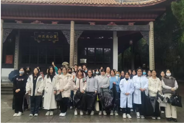 志愿者们于忠烈寺前集合。谌鑫怡讲解活动内容,分发劳动工具,为志愿者们分组以便于正式开始志愿活动。志愿者们相互合作,各司其职,共同清理沿途的有色垃圾。经过三个小时的努力,志愿者们完成任务,并于岳麓山山顶进行活动签到并合影留念。