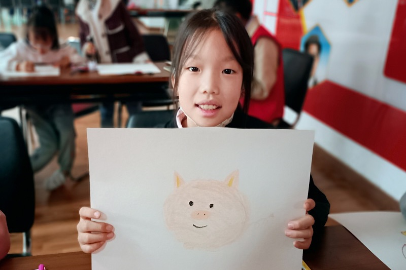 小朋友展示画作
