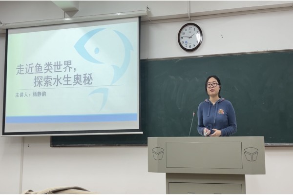 杨静韵由《Nature》封面照片引出对四大家鱼的介绍,并具体分析四大家鱼的主要特征和形态区别,科普了鱼类育种与种质资源保护的相关理论。她介绍了育种工作的进展和种质资源的现状,并结合自身经历介绍生科院鱼类课程的设置及省部共建淡水鱼类发育生物学国家重点实验室的创建过程与研究方向,向同学们提出学习建议。