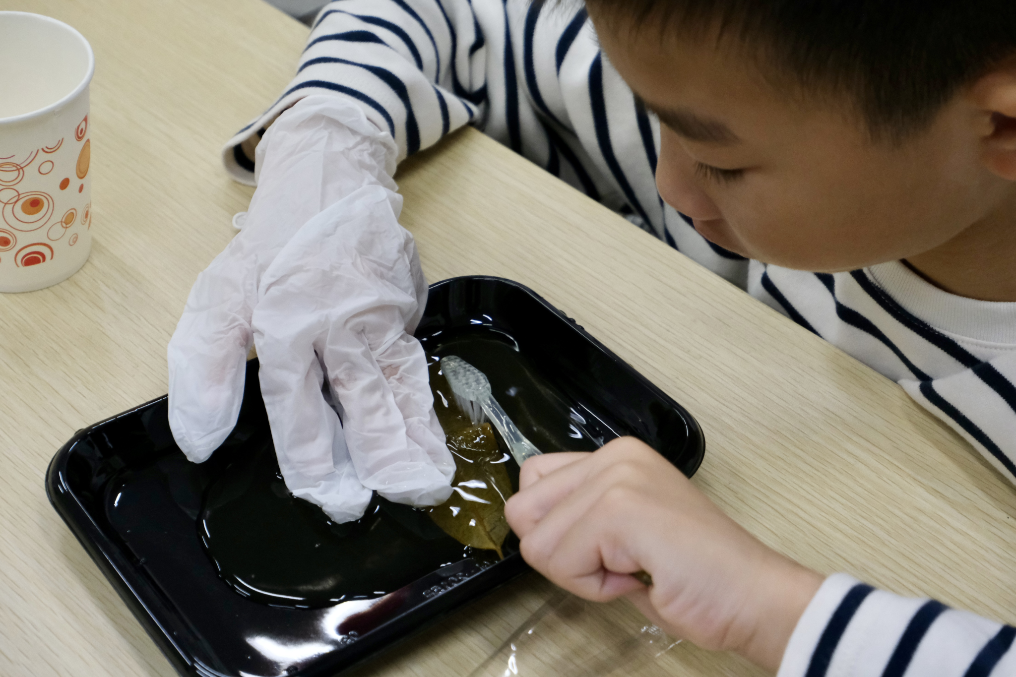 此次活动包括室内讲座与实操手工课两部分。范雄伟以《探索软体动物的奇妙领域》为主题进行讲话,激发小朋友们的兴趣。他向小朋友们介绍贝壳的大致分类以及各自的特点等相关知识,并在期间穿插提问。小朋友们举手抢答,分享从讲座中学到的新知识。小朋友们在主讲人的带领下制作和观察植物细胞切片。主讲人介绍何为切片,以及切片的具体操作方法。并以菠菜叶为例,制作和观察切片。主讲人讲解了细胞结构的相关知识,并进行提问。主持人带领小朋友们进行叶绿素的提取与叶脉书签的制作,并以此让小朋友了解叶绿素在植物光合作用中的作用,以及树叶的结构和生态,掌握提取植物叶片中叶绿素的方法。