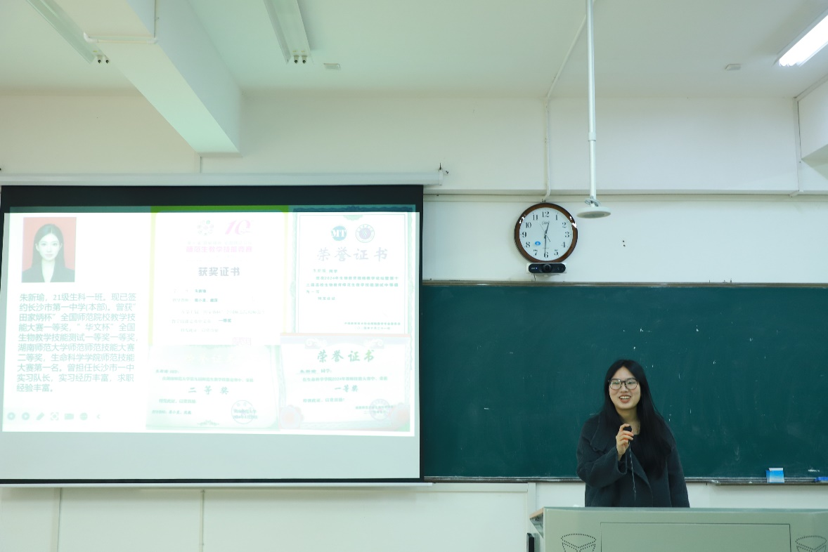 主讲人为同学们提供就业信息和指导,帮助同学们了解就业现状和求职技巧,并结合自身求职经验为同学们解答如就业形势、读研就业选择、求职准备、学校招聘时间流程、简历润色及面试技巧等困扰。主讲人结合面试经历和学院课程向同学们强调师范技能训练和教育实习经历的重要性,鼓励同学们在大学期间参与师范技能竞赛,丰富自身简历,为日后求职做准备。同时,主讲人以高中教材中细胞分化这一章节为例,为同学们讲解片段课程的备课过程,展示备课技巧和教姿教态。