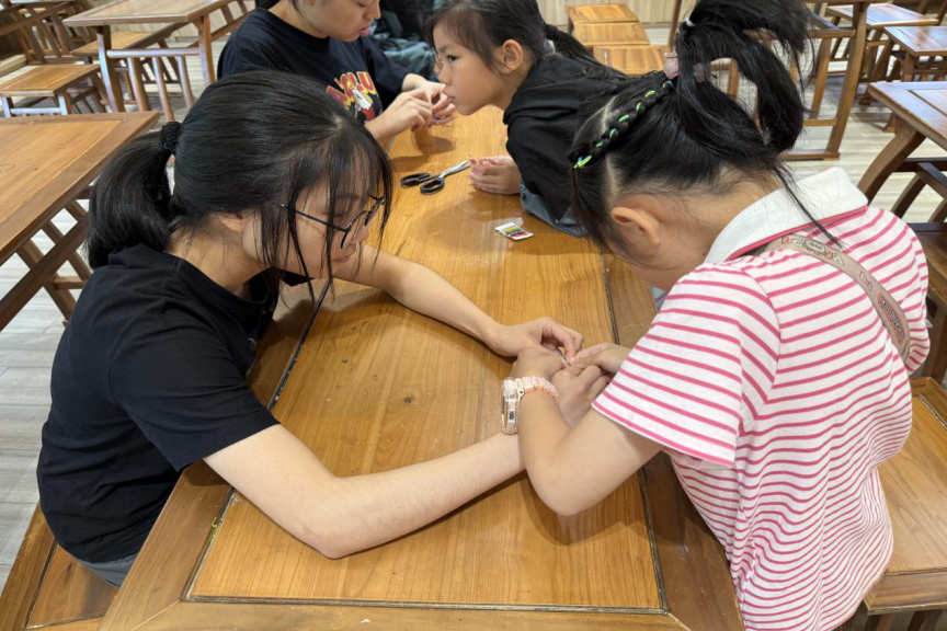 志愿者帮助小朋友完成活动