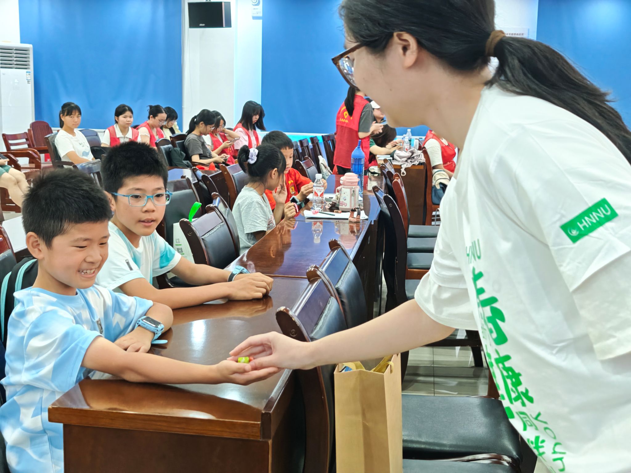 实践队成员和学生互动