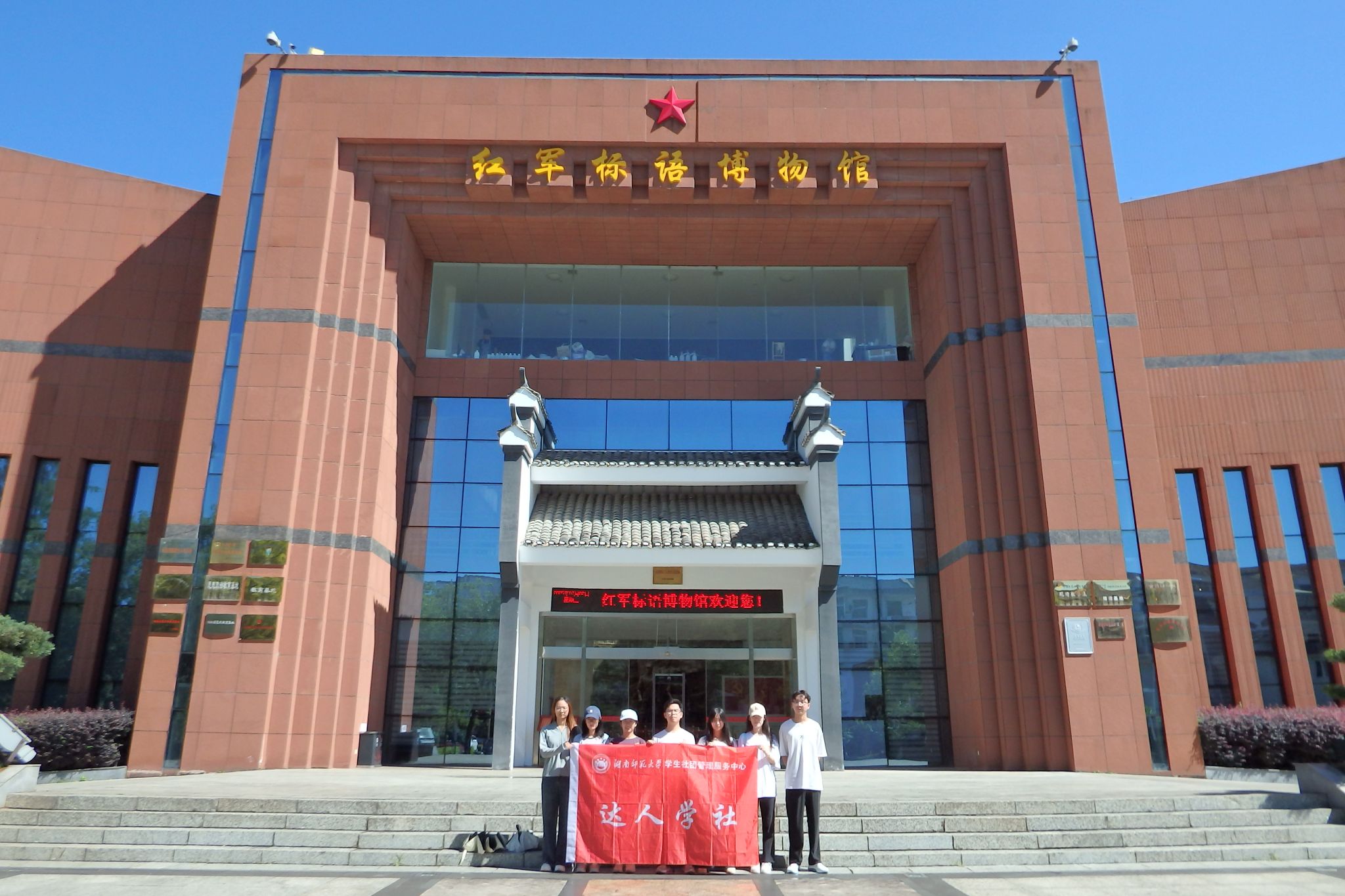 实践团前往红军标语博物馆并采访博物馆讲解员,讲解员为成员们介绍博物馆的设立背景、陈列展品及历史意义。炎陵红军标语博物馆历史悠久,承载着丰富的红色内涵。在数字展区,成员们驻足感受红色历史与数字文化交织融合的魅力。馆中名为“红色印记”的巨幅雕塑,刻画出当年工农红军开展斗争的革命场景。在洣泉书院里,实践团参观传统文化建筑,一览文脉传承的脉络,在毛泽东旧居的场景中触摸红色历史文化记忆。同时,实践团成员积交流实地参观的感受,并于结束后进行合影留念。