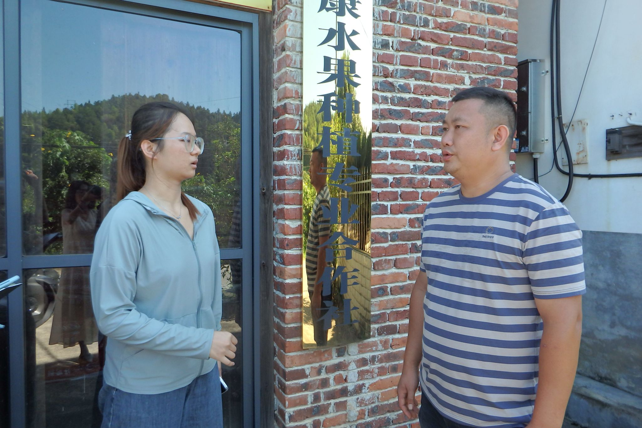 在刘文平的带领下,实践团成员们抵达合作社种植基地,观察基地果实以及直播售卖黄桃的场地。随后,成员们前往乐康水果专业合作社,同刘文平进行访谈。刘文平向成员们介绍“与农户合作、实现共赢”的合作社运营模式,其采取线上线下并行的方式进行黄桃售卖,其中以电商为主要销售渠道,黄桃季每天直播成交量在一万斤左右。刘文平提出,极端天气会影响黄桃产量,导致其口感下降、销售减少。但今年雨水充沛、阳光充足,相比前一年,黄桃并未出现减产趋势。