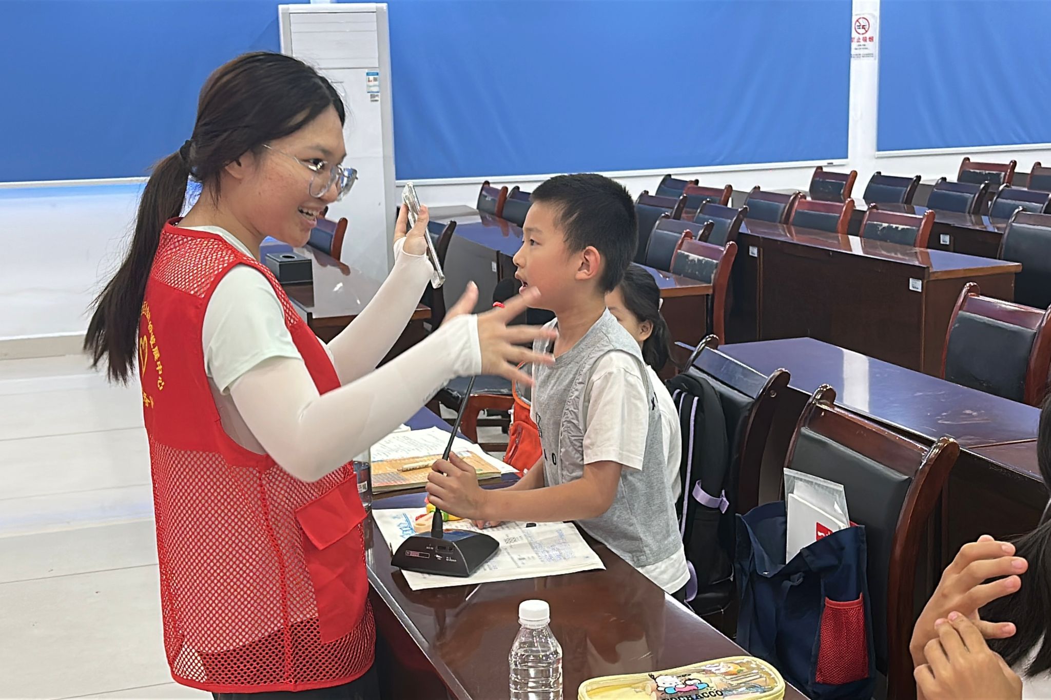 活动以“传承红色文化”为核心,结合7月1日建党节背景展开。史文希带领孩子们齐唱《歌唱祖国》,通过讲解歌曲创作背景与爱国内涵,引导小朋友感受建党节的意义。在“击鼓传花”音乐游戏环节,史文希背向人群随机播放与暂停音乐,小朋友们传递一个小玩具,音乐停止时持有玩具的孩子需演唱一首歌曲。活动共进行七轮,演唱曲目包括《红色高跟鞋》《笼中鸟》《起风了》《小美满》《微微》《有何不可》《老男孩》。部分学生起初因腼腆而拒绝演唱,在同学们和老师们的鼓励下,最终与同学合作演唱《微微》。