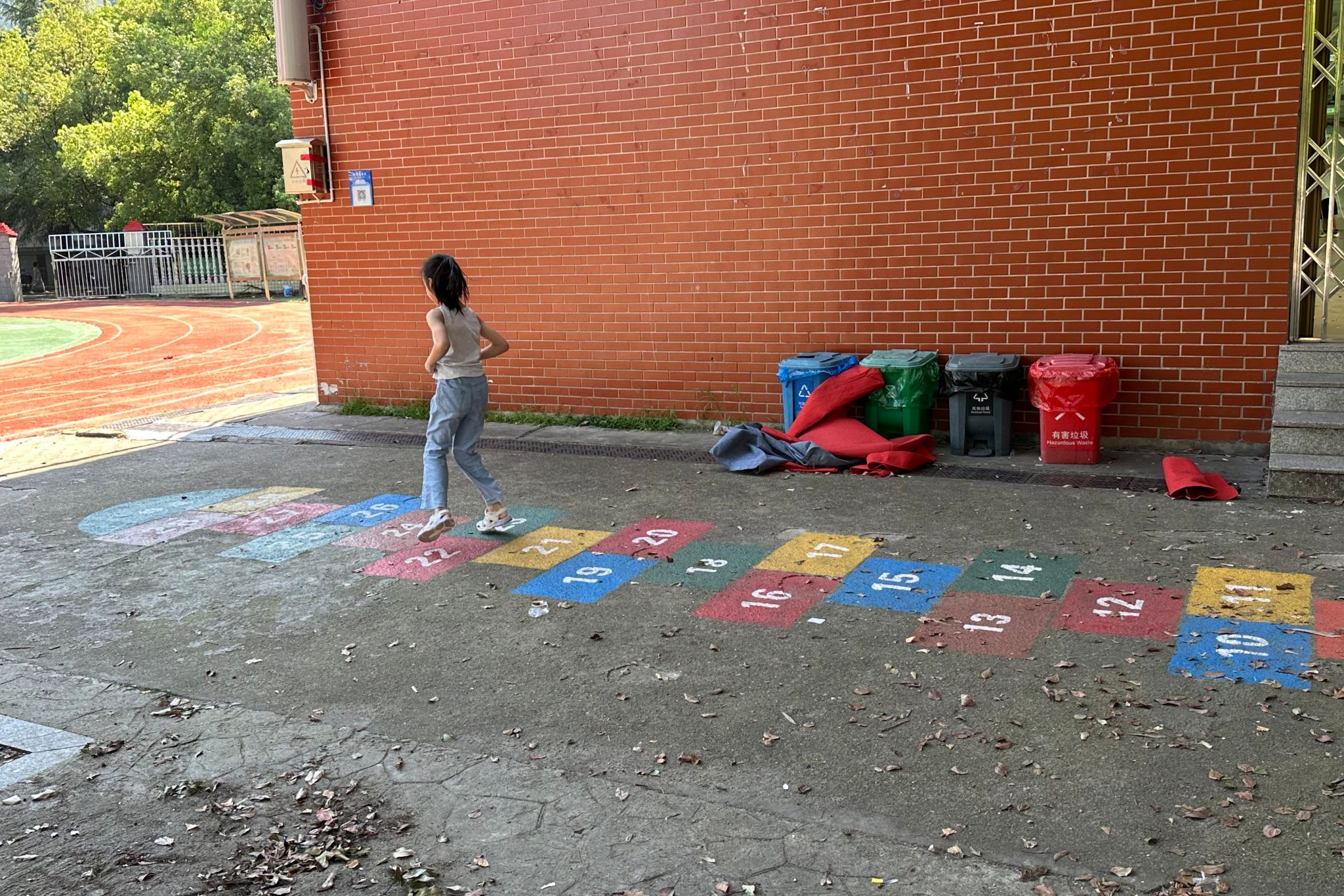 小朋友在玩跳格子