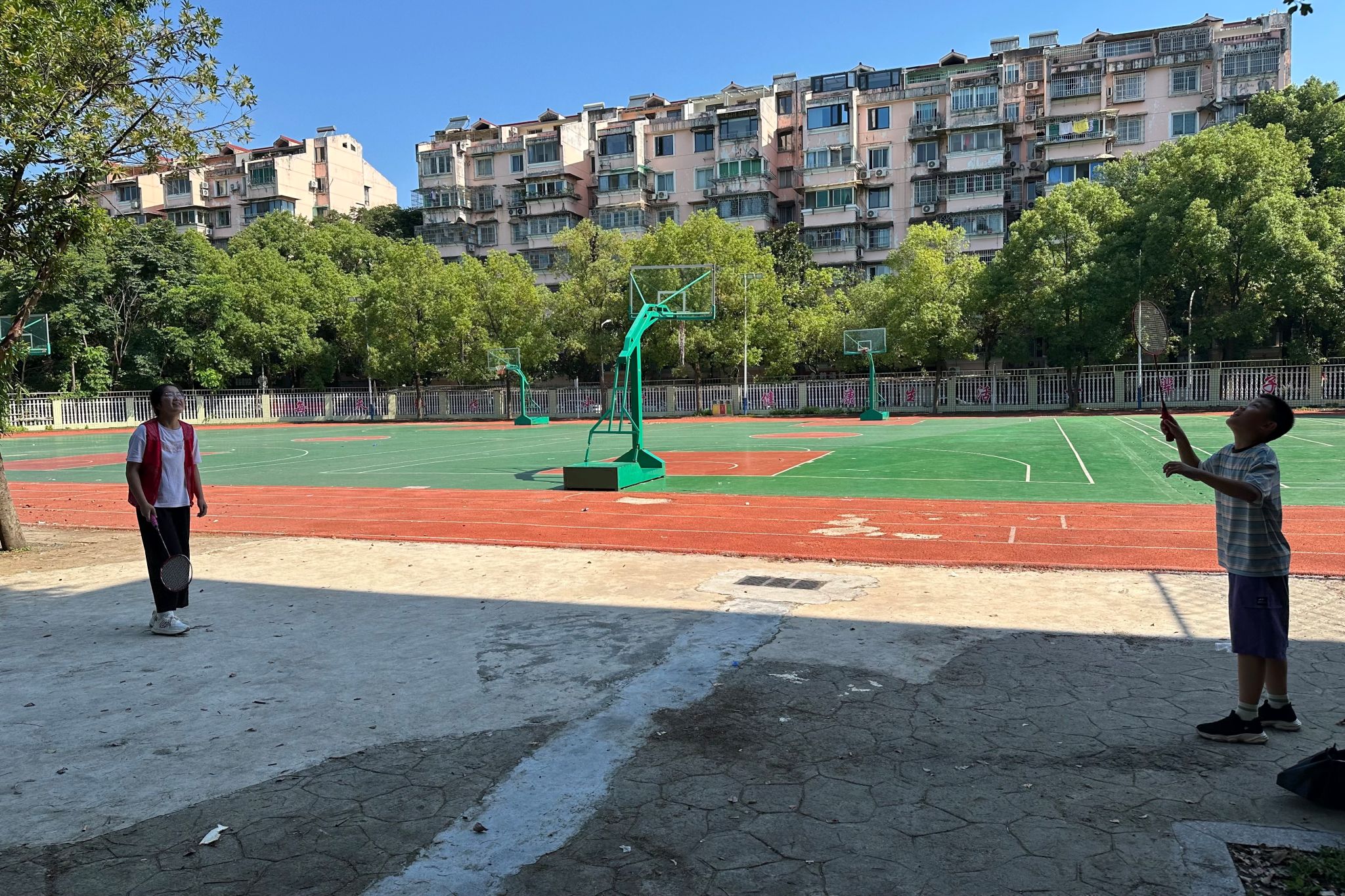 实践团成员与小朋友玩羽毛球