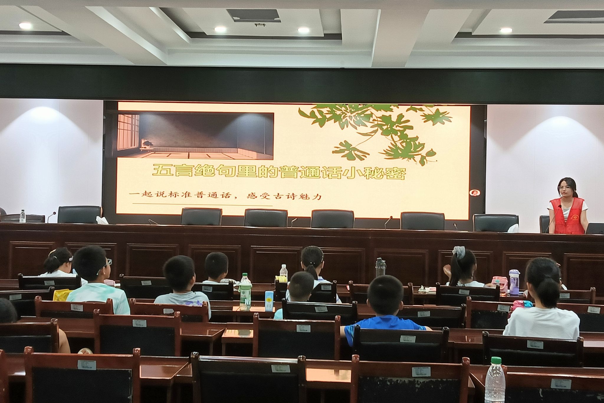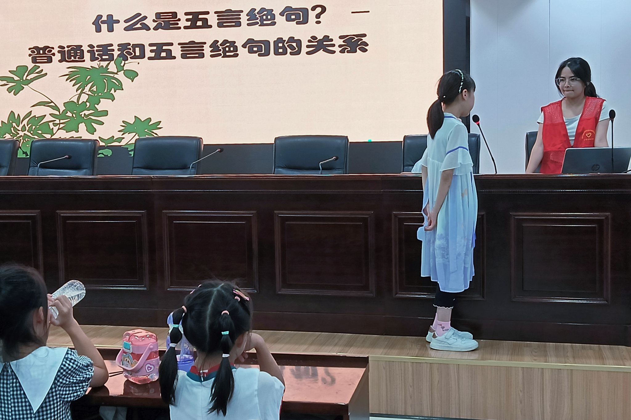 (通讯员 赵雅烯 黄洁莹)7月2日下午,伟德国际victor1946团委“湘畔守望”赴湖南省长沙市岳麓区暑期社会实践调研团在桔子洲街道办事处开展关于五言绝句的普通话推广课程。实践团黄洁莹担任此次课堂的主讲人,生科院团委暑期实践团部分成员参与此次活动。