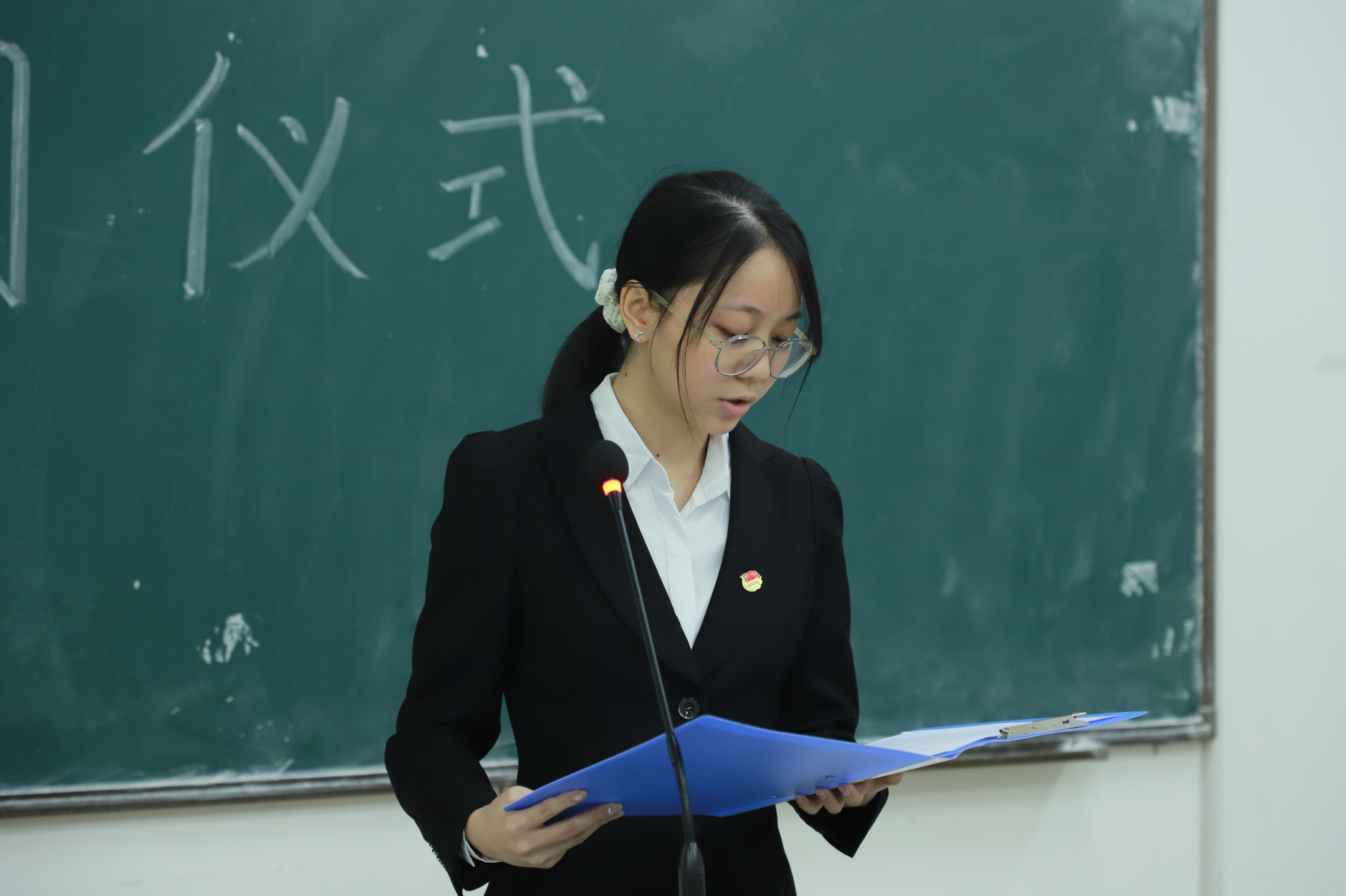 会议开始,到场人员全体起立奏唱国歌,随后张怡宁介绍入团仪式,宣读生科院2025新发展团员名单。新发展团员被授予团员证和团徽,并面向团旗进行入团宣誓。郑文妍作为新团员代表发言,表示自己将会履行团员的义务,学习知识,锤炼能力,培养理想信念,树立正确价值观,并愿意为共产主义事业奋斗终生。吴晴在讲话中表示,加入共青团是每一个年轻人的荣幸,她号召新时代青年在共青团中成长成才,同时希望每一位新团员铭记入团誓词,以实际行动践行团员的职责。随后全体起立奏唱团歌。