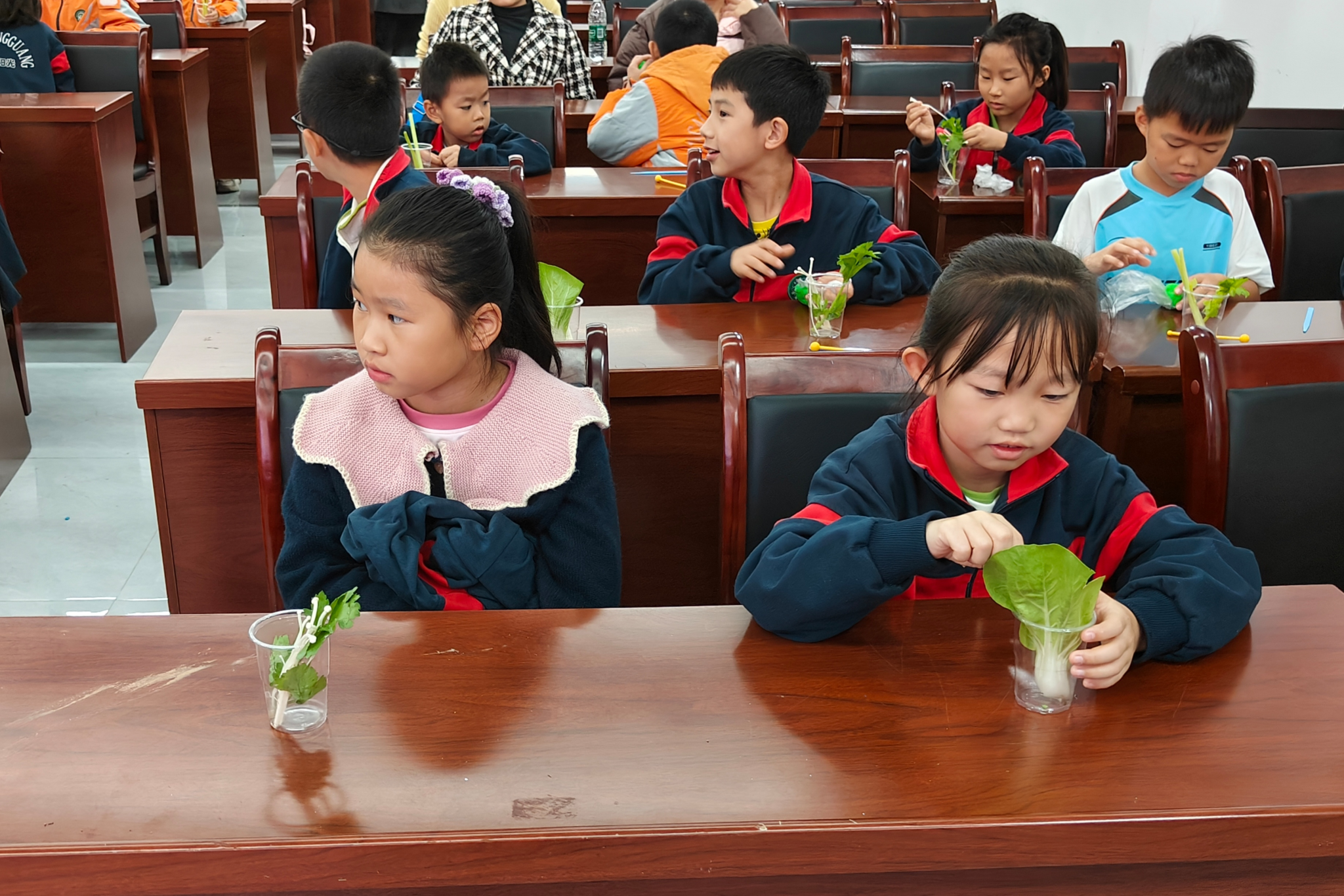 小朋友进行叶脉运输实验