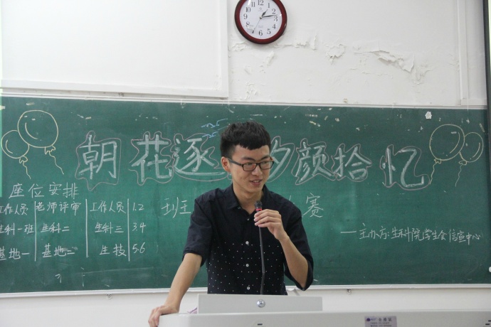 此次比赛由院学生会信宣中心主办,生科院2016级各班都拿出了具有班级特色的视频。为保证比赛结果的公正与公平,各班各派出八名大众评审,他们与评审团一起,参与班级视频的评分。活动开始,主持人介绍了大赛流程及评分细则并宣布比赛开始。过程中,班长们简单地介绍了自己的班级,展现出了各班的风格。在各班的视频中,生科三班的“新闻断播”受到了大家的一致好评,想法独特新颖,后期剪辑也精致独到,不仅彰显了生科三班同学们灵动的表演力,也表现出了他们强大的凝聚力。生科一班的视频创意也得到了大家的认可,视频由几组同学们的生活片段拼接在一起,使得视频既有趣又充满回忆。在所有的视频播放完毕后,辅导员张金萍和信宣主任于梦书相继对比赛进行了细致点评。最后,主持人公布了比赛结果,生科三班获得一等奖,基地一班,生科一班获得二等奖,基地二班,生物技术班及生科二班获得三等奖,另外,生科一班荣获了最佳创意奖。