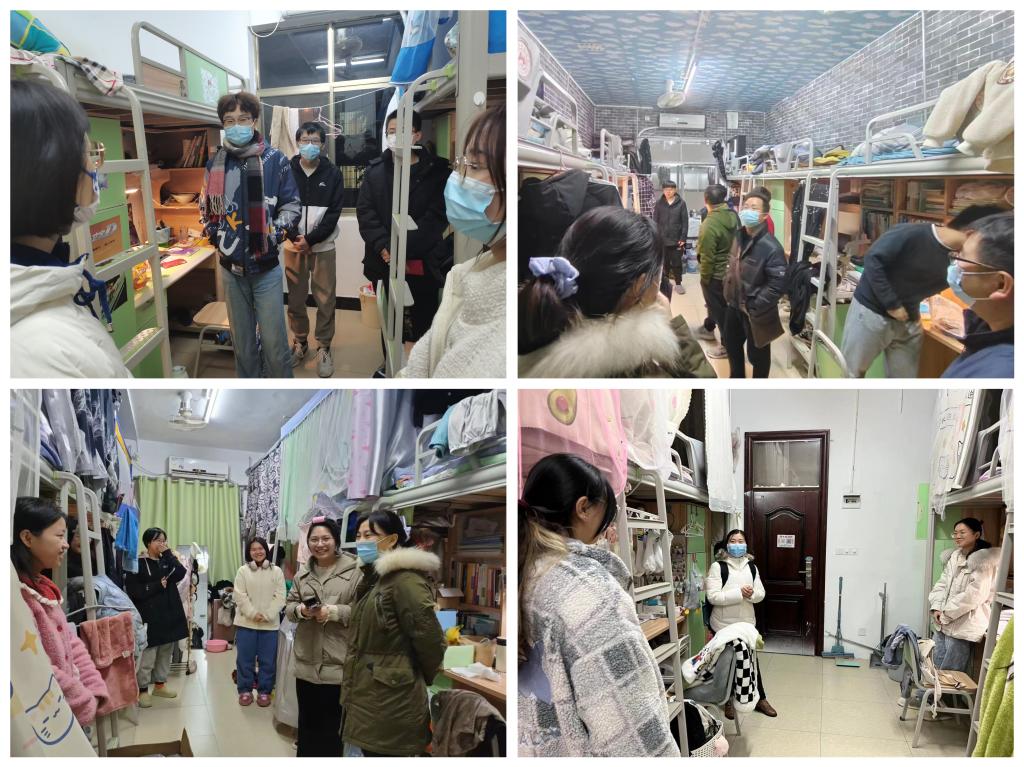 走访过程中,辅导员与同学们亲切交流,面对面了解同学们线上学习和疫情生活中的情况,并强调宿舍卫生、通风等问题,提醒同学们在公共场合佩戴口罩,叮嘱同学们时刻注意安全防护。辅导员们建议同学们应进行适当的锻炼,早睡早起,健康饮食,养成良好的生活习惯。