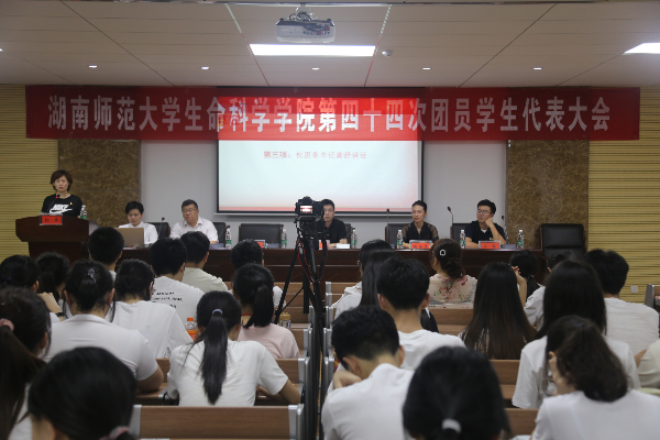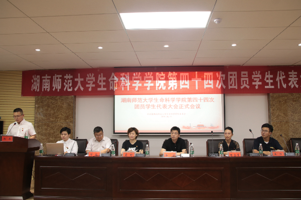 (通讯员 张瀚引 丁翔 黄志娴)6月11日晚,伟德国际victor1946在B栋307教室召开了第四十四次团员学生代表大会。校团委书记龚舒,院党委书记陈宇,院党委副书记陈松,院团委书记杨卓,2016级辅导员张金萍,2018级辅导员王洋出席了此次会议。校团学组织学生委员、各兄弟学院主席团成员、生科院全体班级代表、社团代表以及团学组织新老学生干部参加了此次会议。杨卓主持此次会议。