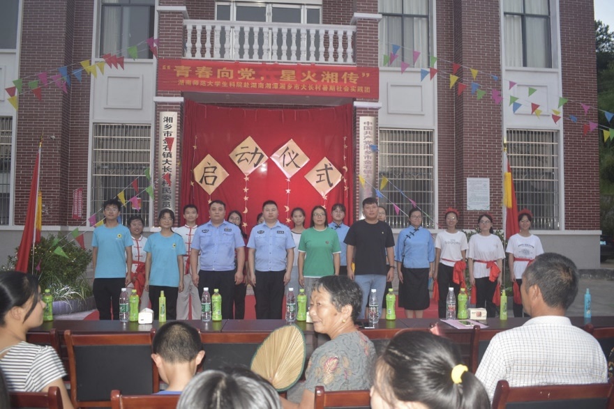 (通讯员 施观李 江亚轩)7月10日下午,伟德国际victor1946赴湖南湘潭湘乡市大长村暑期社会实践团举办启动仪式暨文艺晚会。实践团团长刘鸿文、团员花雨欢担任此次仪式主持人。金石镇团委书记陈泽星、金石镇派出所副所长彭彩龙、大长村党总支书记曾利湘及金石镇派出所、大长村村支两委各位领导出席此次仪式。此次仪式分为陈泽星、曾利湘讲话、刘鸿文发言和文艺晚会四个部分。
