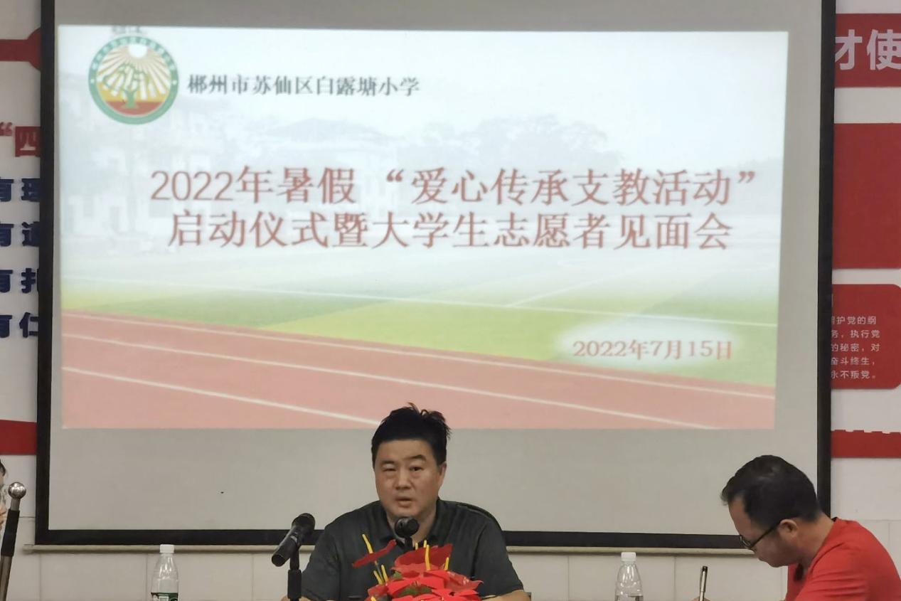 (通讯员 宁玲惠 赵曼 刘智慧)7月15日下午,伟德国际victor1946三叶草园艺社赴郴州市苏仙区白露塘小学暑期社会实践团与白露塘小学校委会成员开展暑假“爱心传承支教活动”启动仪式暨大学生志愿者见面会。白露塘小学校长首林峰担任会议主持人。副校长李吉斌、唐容容、教务办主任文斌、政教处主任陈俐璇、后勤处主任吴代万、办公室主任张红娟、少先队辅导员李思琪出席此次会议。