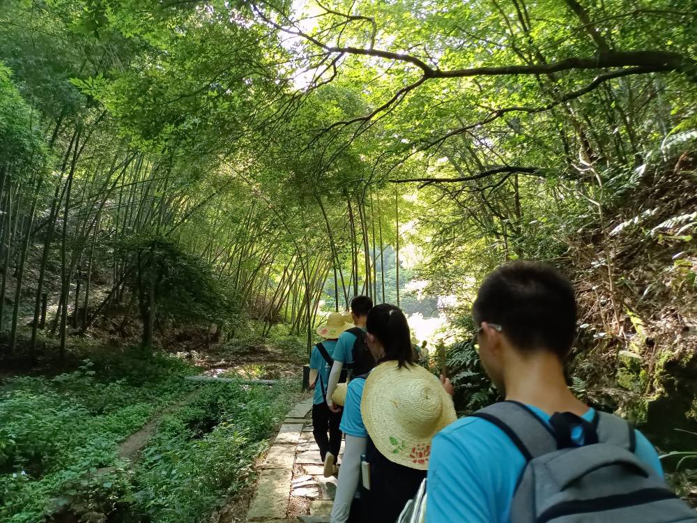 实践队成员在拉练过程中通过歌声相互加油鼓劲。历经五个小时的徒步行走、翻山越岭,成员们来到了毛泽东的故乡——韶山。团队成员走进毛泽东故居感受伟人的气息,并在晒谷坪追忆毛主席的劳动经历。在讲解员的介绍下,成员们深入地了解毛泽东年少时学习的故事,并被他始终坚持实事求是、一心为人民服务的精神所感动。