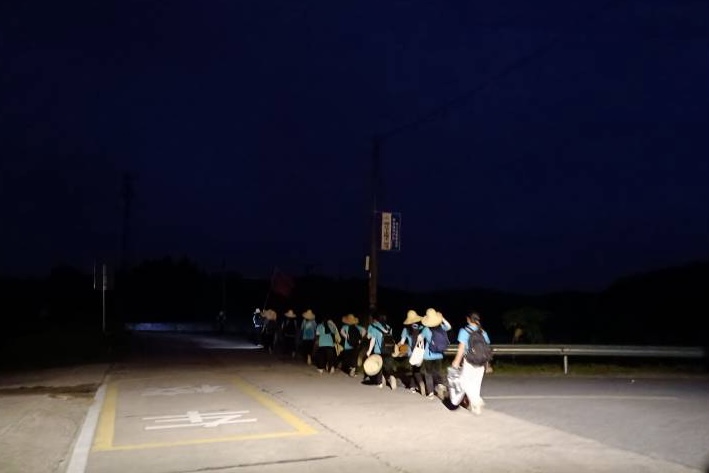 实践队队长刘鸿文在安全演练中向队员们介绍了徒步行进中的三个口令,并对拉练过程中可能出现的安全问题做了预防措施,设置了安全员与医疗员保障队员的安全。