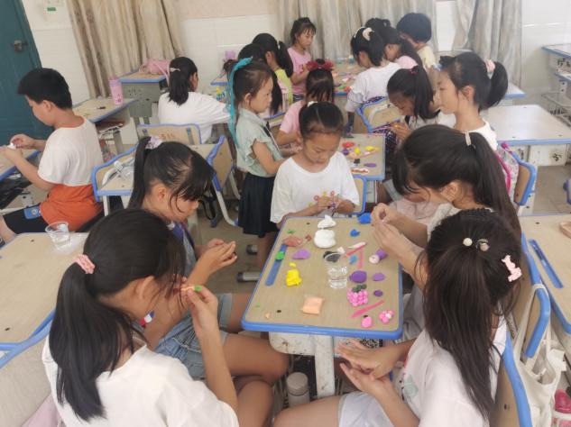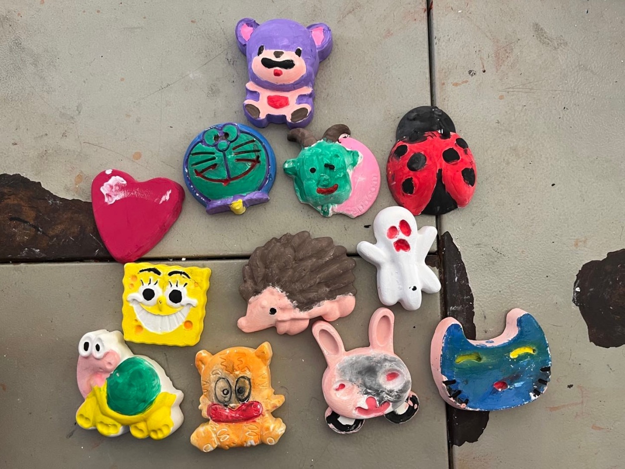 老师们在课前为学生们准备好了手工粘土、石膏娃娃和颜料等材料。在老师们讲解完制作方法后,学生们发挥自己的想象能力,动手创造自己的作品,并在完成后展示自己的作品。