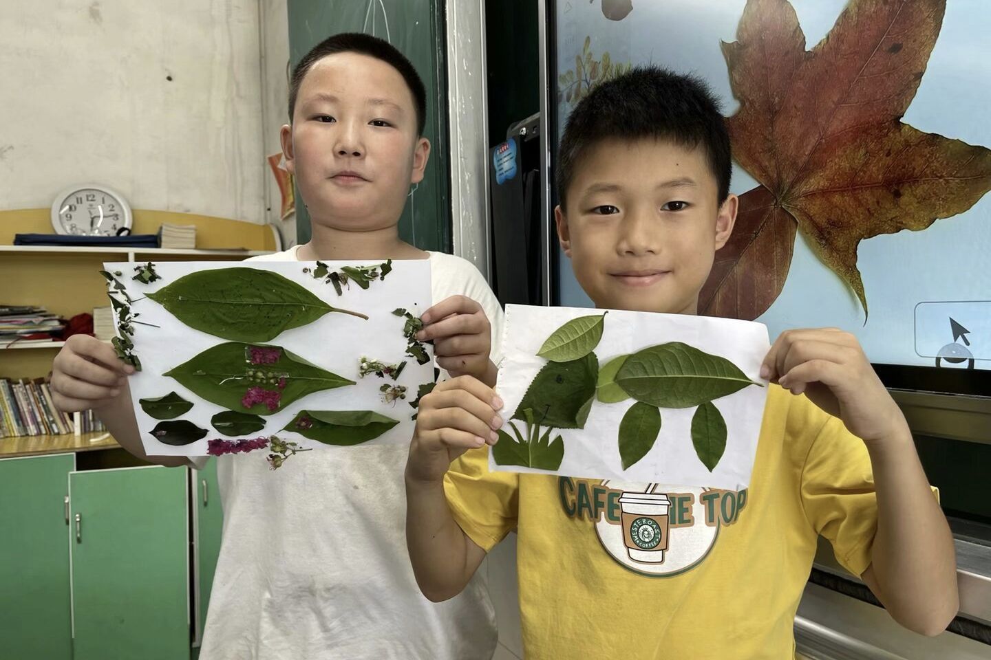 此次系列课程包括炫彩刮画课、树叶贴画课、创意绘画课以及沙画制作课。向蓉禧、王妍讲解刮画的制作过程,小组长领取材料并分发给组员,学生在老师设定的情境和主题上发挥想象力,绘制自己的奇思妙想。王子怡从植物简笔画切入,介绍各种植物的形态特点,学生在画纸上画出自己的创意植物画。金雪儿以树叶的科普为切入点,介绍树叶贴画的制作,学生用在户外采集的树叶,以剪、拼、贴的方式在画纸上进行创作。金雪儿示范沙画的颜色涂抹及固定,学生领取沙画的图样和彩沙,在老师的指导下使用牙签和彩沙完成绘画。
