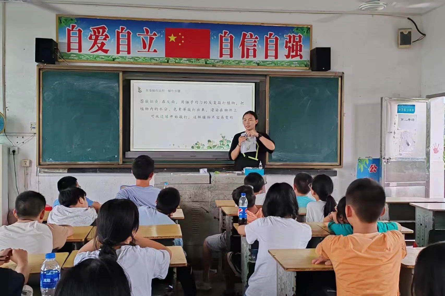 (通讯员 陈春雨 李丹)7月20日上午,伟德国际victor1946三叶草园艺社赴郴州市苏仙区五里牌中学暑期社会实践团在五里牌中学开展植物拓染课程,实践团成员罗嘉、喻琪担任此次课程主讲人。